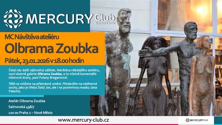 Návštěva někdejšího ateliéru, dnes Galerie Olbrama Zoubka, s výkladem jeho dcery a současné ředitelky Nadace Kmentová Zoubek, paní Polany Bregantové, byla pro členy našeho Mercury Clubu dalším skutečně výjimečným zážitkem.