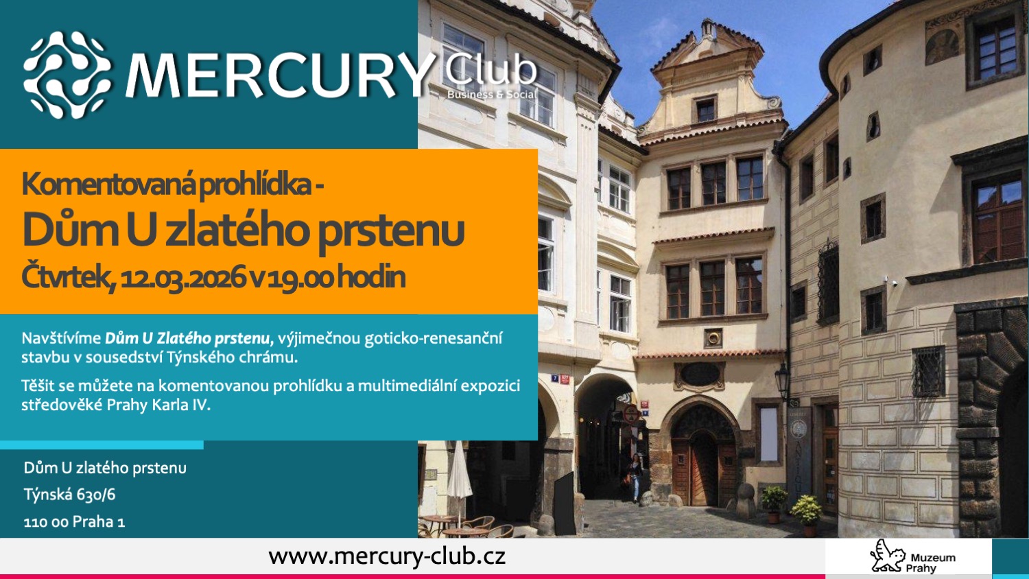 V těsném sousedství Týnského dvora, na místě kde kdysi byl městský obranný příkop, součást pražské fortifikace, jsme navštívili "Dům U Zlatého prstenu". Tam kde ve středověku, pod ochranou českých knížat a později králů, bylo opevněné útočiště pro cizí kupce, kteří přijeli za obchodem do Prahy, proběhla komentovaná prohlídka pro, dalo by se říci, soudobé kupce, obchodníky, podnikatelé, ale především, členy našeho Mercury Clubu.